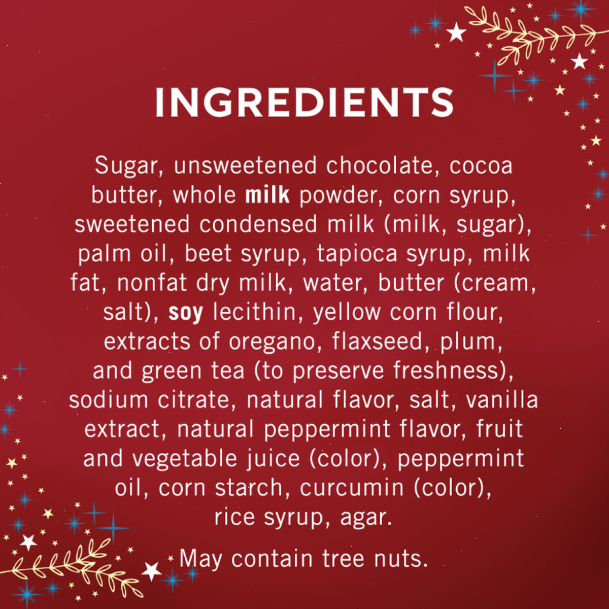 Celebrate the Christmas season with GHIRARDELLI Limited Holiday Chocolate Assortment SQUARES. These SQUARES are a delightful mix of milk chocolate caramel, dark chocolate mint, peppermint bark, and Intense Dark 60% cacao dark chocolate. Perfect for Christmas gatherings or as a thoughtful gift, these chocolates will surely bring joy and smiles. They're ideal for sharing with loved ones, giving as a special Christmas gift, or simply indulging in a well-deserved treat. Each GHIRARDELLI SQUARE is carefully crafted with premium ingredients and high quality cocoa beans. GHIRARDELLI Makes the Holidays A BITE BETTER.