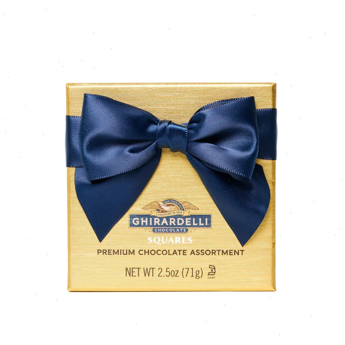 Ghirardelli's Chocolate Favor Gift Box features premium assorted chocolates that are perfect for gifting. This chocolate gift box contains five assorted Ghirardelli chocolate SQUARES, each made with high quality ingredients and sustainably sourced cocoa beans that deliver signature intense, slow-melting chocolate taste. The perfect gift for a variety of occasions such as for wedding favors, baby showers, party favors and more. This chocolate gift box of individually wrapped candy is a great way to put smiles on the faces of your office staff, family and friends. Each gift box of chocolates contains five Ghirardelli SQUARES in the following flavors: Milk Chocolate Caramel, Dark Chocolate Sea Salt Caramel, Dark Chocolate Raspberry, Dark Chocolate Mint and Dark Chocolate 60% Cacao. All of this comes in an elegant chocolate gift box with a beautifully tied ribbon bow for impressive presentation. Ghirardelli Makes Life a Bite Better.