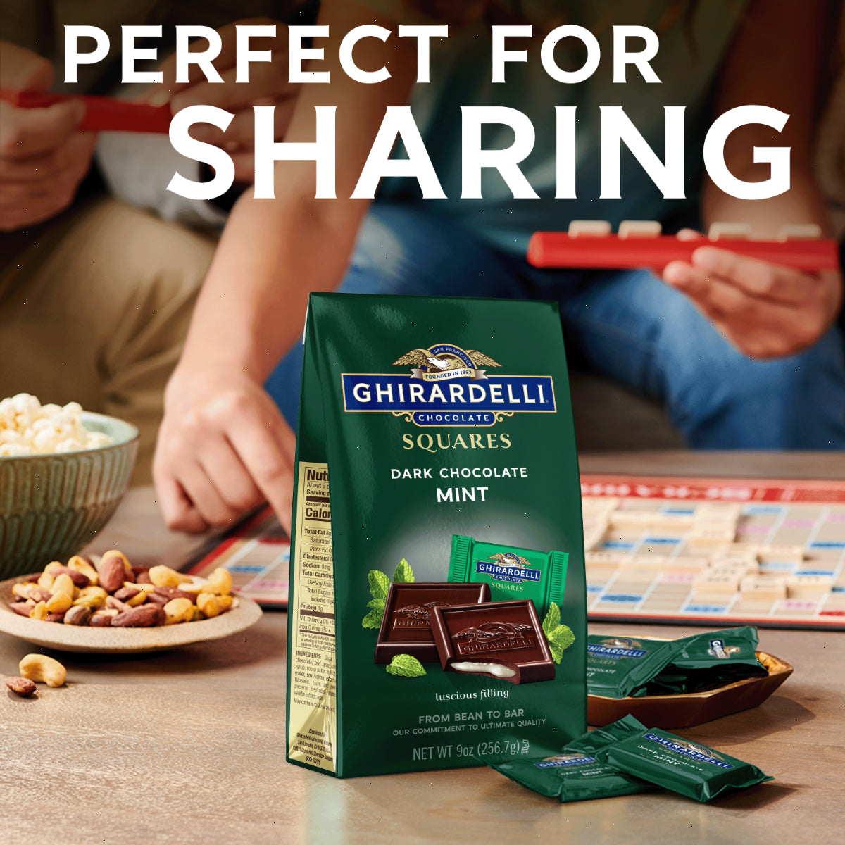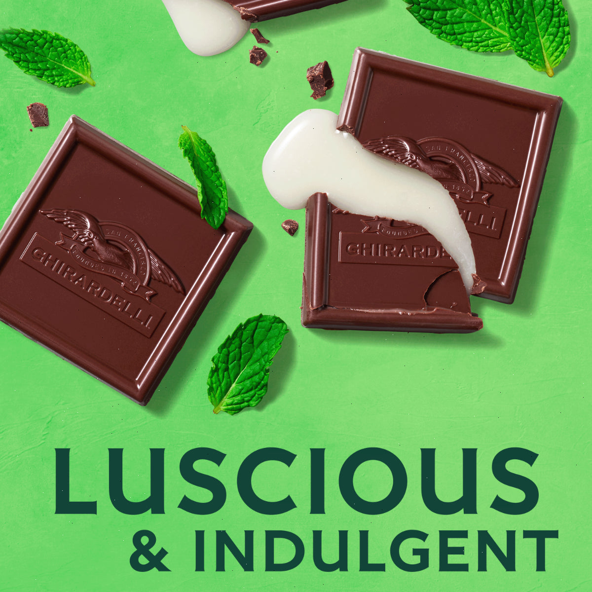 GHIRARDELLI Dark Chocolate Mint squares are refreshing and decadent. The perfect after-dinner treat or special gift, these mint chocolate squares make any part of your day more delicious. Each dark chocolate square features tantalizingly refreshing mint filling surrounded by rich, slow-melting dark chocolate. These individually wrapped chocolate squares are the perfect personal size indulgence for home, work or on the go. GHIRARDELLI chocolate is certified kosher and crafted with care using high quality ingredients for a smooth, slow-melting treat. GHIRARDELLI Makes Life a Bite Better.